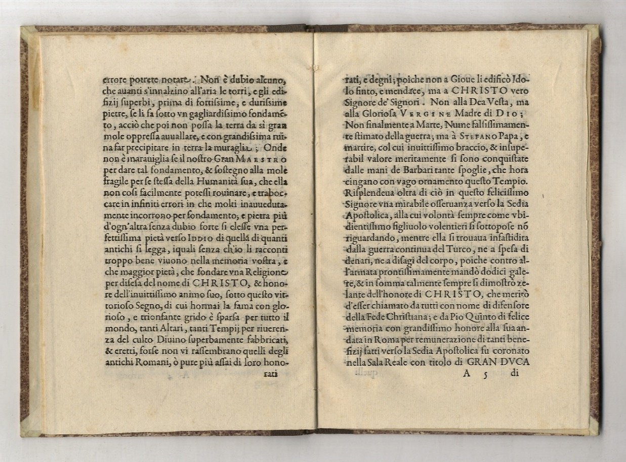 In Fiorenza, per Filippo Giunti, 1598, in-4 piccolo, legatura moderna in mezza tela, pp. [20]. Con marca tipografica dei Giunti in xilografia sul frontespizio. Ottime condizioni.