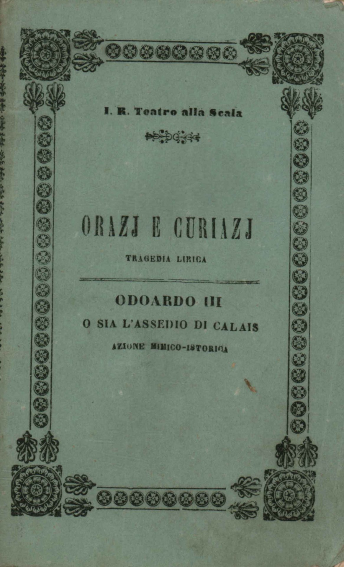 Orazj e Curiazj Tragedia lirica in tre atti da rappresentarsi nell'Imp. Regio Teatro alla Scala il Carnovale 1847-48
