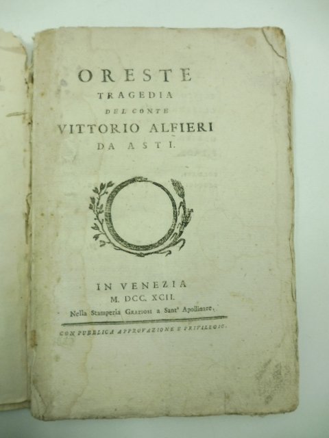 Oreste. Tragedia del conte Vittorio Alfieri da Asti | Libri antichi e moderni | Alfieri Vittorio