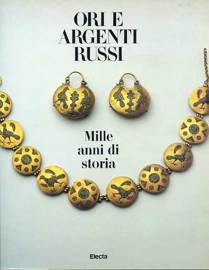 In-4°, pp. 231, cartonatura editoriale con alette illustrata fotograficamente al piatto. Numerose illustrazioni in b.n. n.t. e 291 tavv. fotografiche a colori f.t. Perfetto stato. Catalogo dell'esposizione tenutasi alla Fiera di Milano nel giugno-luglio 1991 di ori ed argenti provenienti dal Museo Storico Statale di Mosca. Testi di Asarina, Nedosivina, Sizova, Krjuk, Smorodinova; il campo d'indagine dei contributi spazia dalla Rus' premongola all'arte orafa del XX secolo.