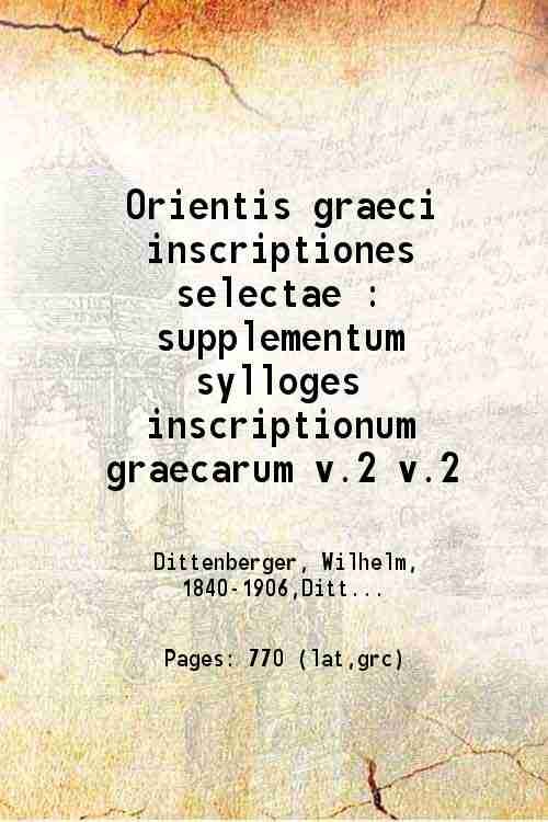 Orientis graeci inscriptiones selectae supplementum sylloges inscriptionum graecarum Volume 2nd 1905