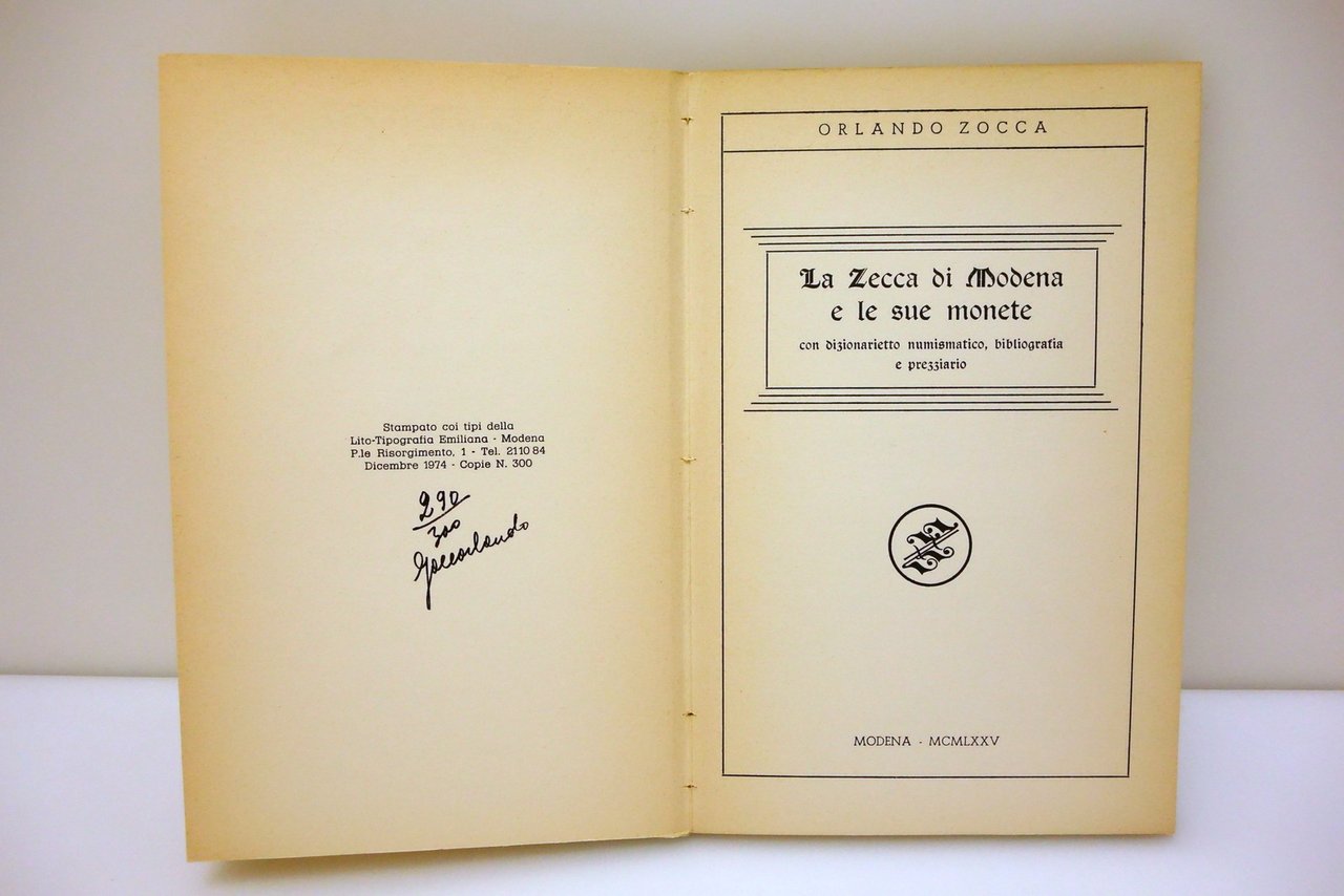 Orlando Zocca la Zecca di Modena e le sue Monete Edizioni Zocca 1975 Numerato | Libri antichi e moderni |