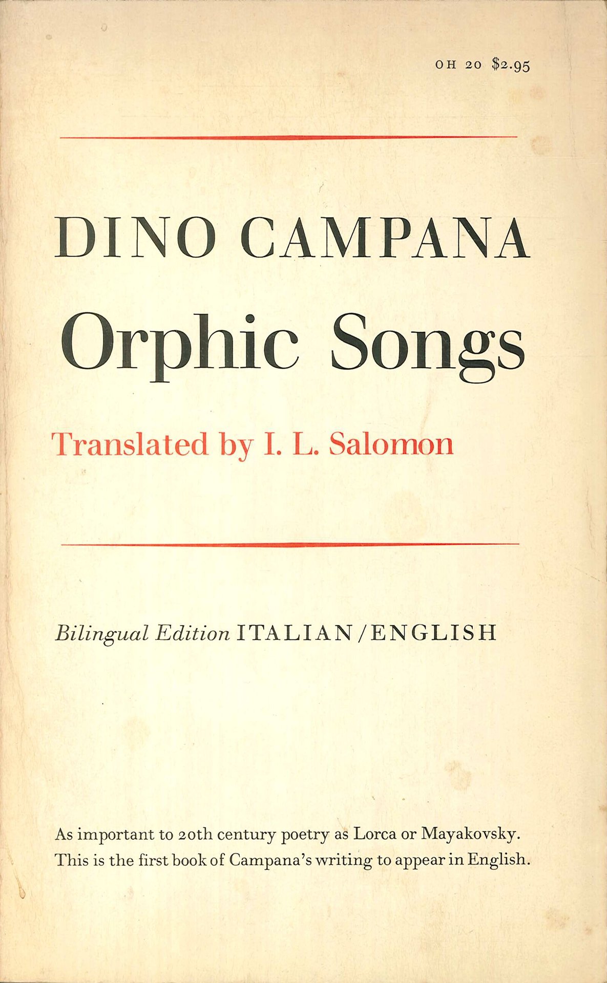 Orphic Songs. Dino Campana | Libri antichi e moderni | Campana Dino, Salomon I. L.