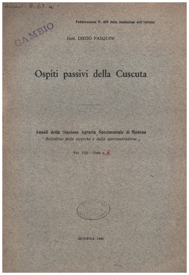 Ospiti passivi della Cuscuta Vol. VIII - nota 3 | Libri antichi e moderni | Dott. Diego Pasquini