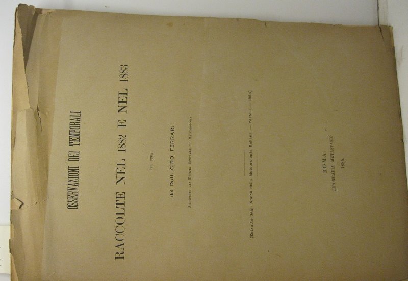 Osservazioni dei temporali raccolte nel 1882 e nel 1883. Estratto dagli Annali della Meteorologia italiana. | Libri antichi e moderni | Ferrari Ciro