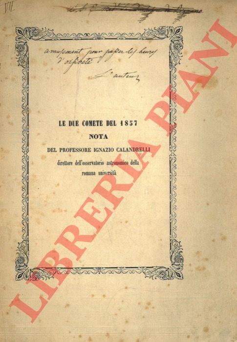 Osservazioni e calcolo delle orbite delle due prime comete telescopiche dell'anno 1857 ed esame delle diverse opinioni sulla fisica costituzione di questi astri. | Libri antichi e moderni | Calandrelli Ignazio