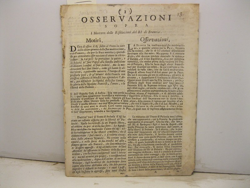 Osservazioni sopra i Motivi delle Risoluzioni del Re di Francia | Libri antichi e moderni | Anonimo