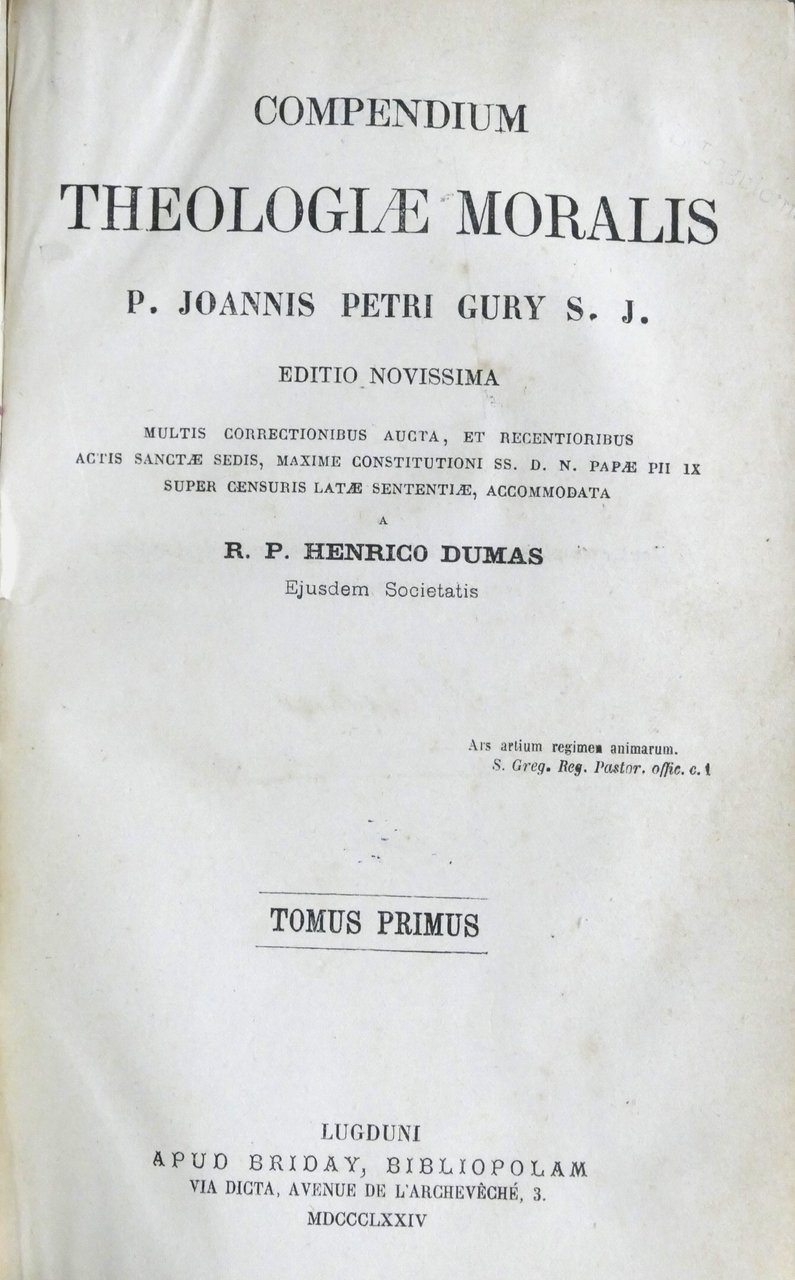 P. Joannis Petri Gury - Compendium Theologiae Moralis - 1874 - Esorcismo | Libri antichi e moderni |