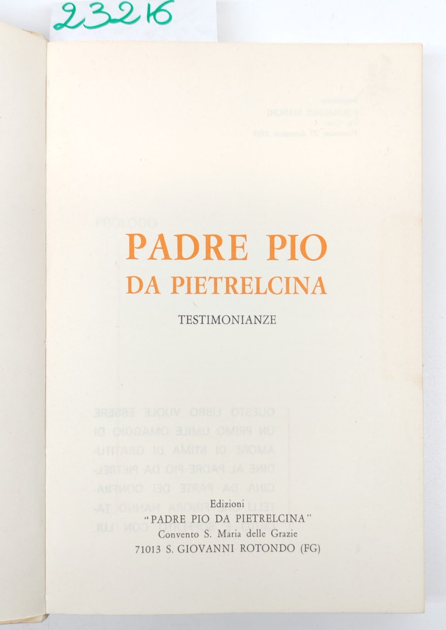 P. Vincenzo da Casacalenda Padre Pio da Pietrelcina Testimonianze 1969 | Libri antichi e moderni | P. Vincenzo Da Casacalenda