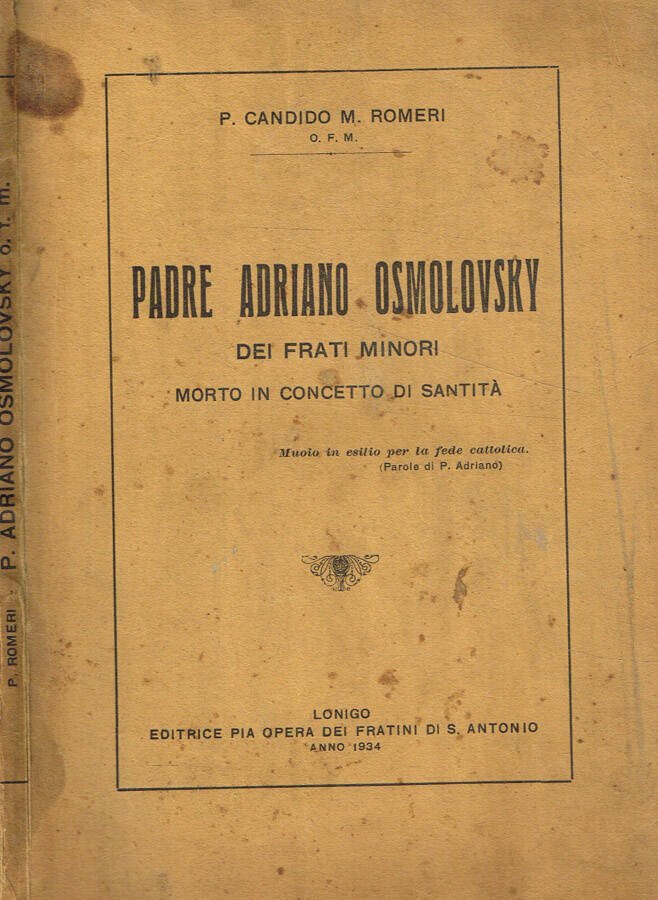 Padre Adriano Osmolovsky dei frati minori morto in concetto di Santità | Libri antichi e moderni | P.Candido Romeri