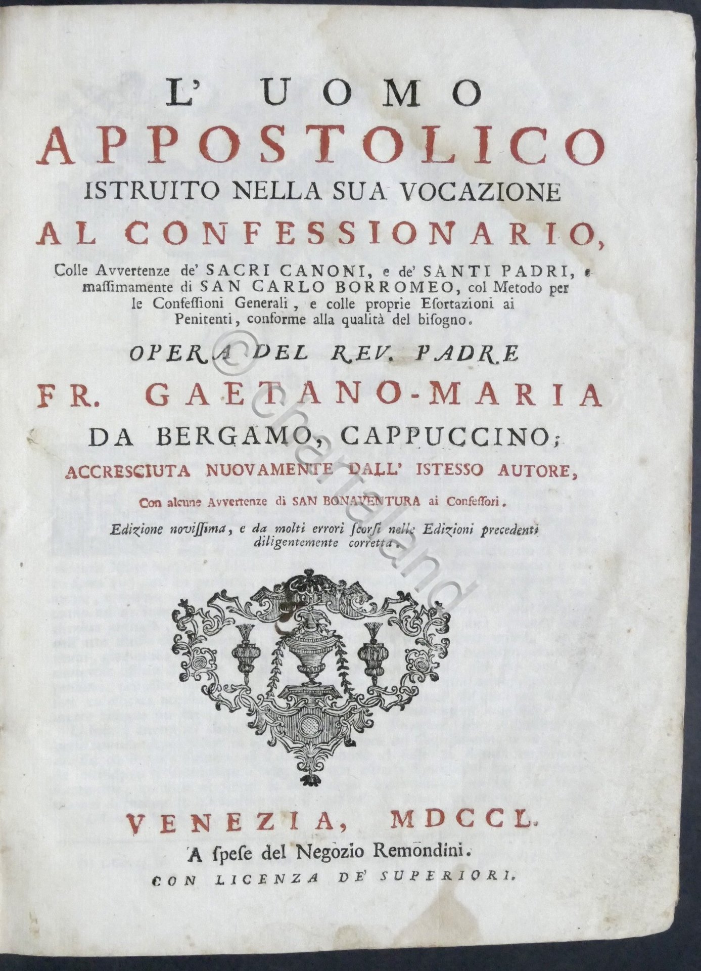 Padre Fr. Gaetano-Maria da Bergamo - L'uomo appostolico - ed. 1750 Remondini | Libri antichi e moderni |