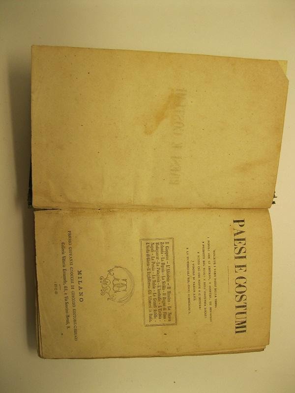 Paesi e costumi. Descrive i varii paesi della terra, i popoli che li abitano, i costumi, le religioni, i prodotti del suolo e dell'industria locale e tutto cio' che serve a cementare i vincoli di nazionalita' e le vicendevoli relazioni commerciali Il Giappone - L'Abissinia - Il Messico - La Nuova Zelanda - La Russia - La Sicilia - Il Regno di Siam - Madagascar - La Patagonia - L'Australia - L'Ercinia - Napoli - La Persia - La Nubia - Le Grandi Antille - L'isola di Giava - l'Inghilterra - ecc. | Libri antichi e moderni |