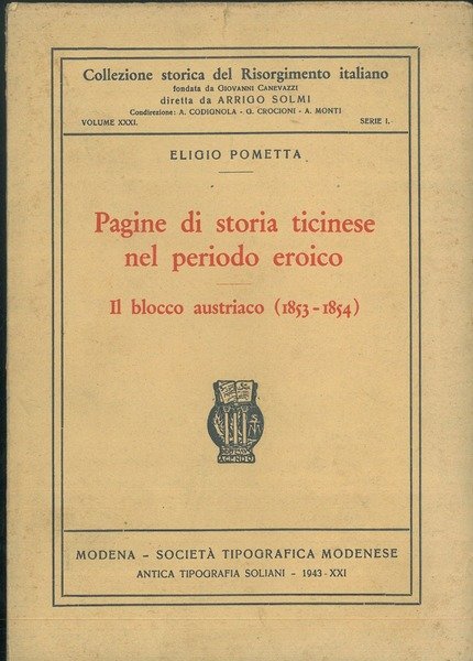 Pagine di storia ticinese nel periodo eroico. Il blocco austriaco (1853-1854) | Libri antichi e moderni | Pometta, Eligio