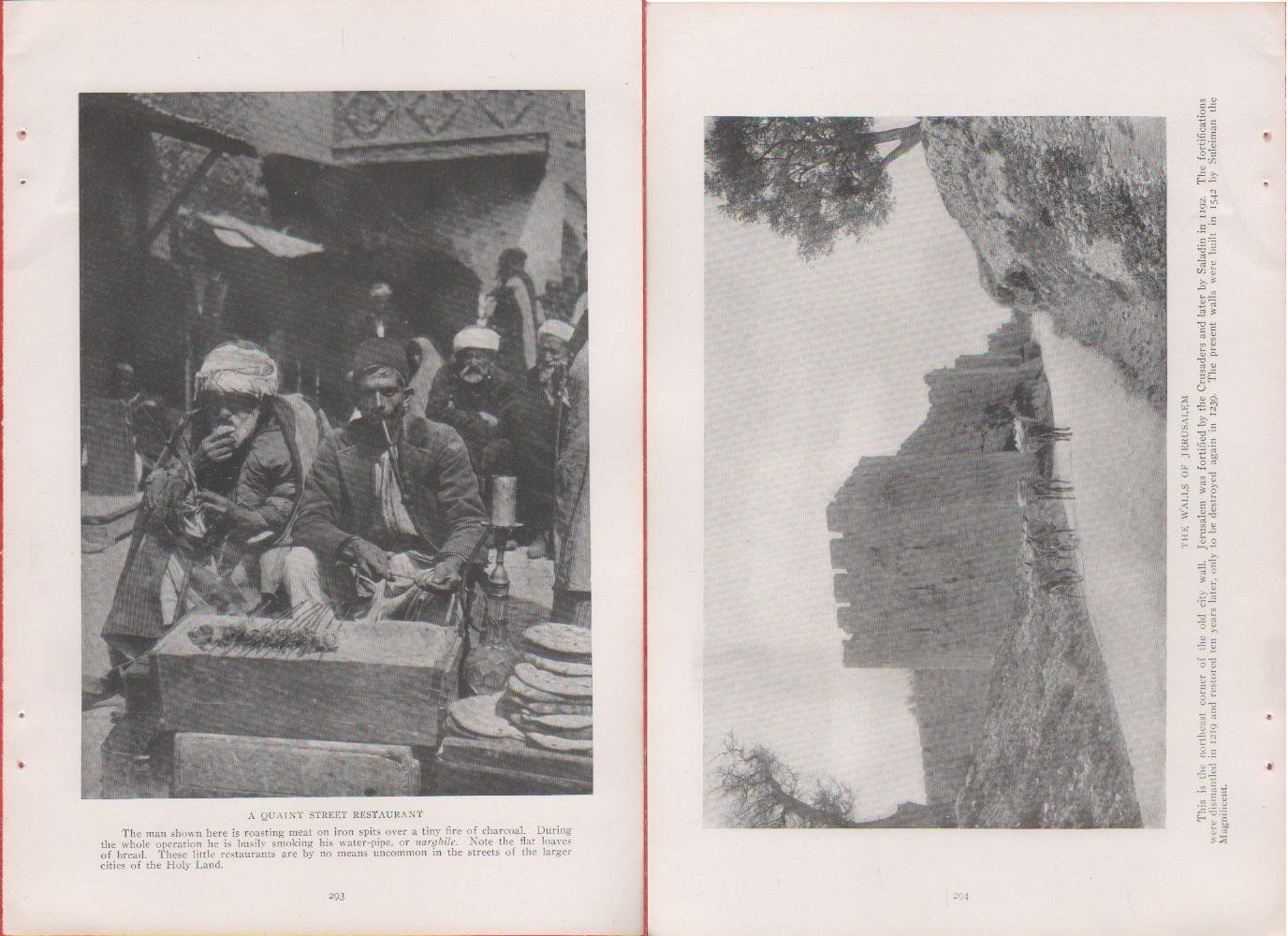 Palestine. A quaint street restaurant/The walls of Jerusalem. Foto da rivista 1914 | Libri antichi e moderni | ,