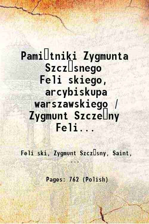 Pami?tniki Zygmunta Szcz?snego Feli?skiego, arcybiskupa warszawskiego / Zygmunt Szcze?ny Feli?ski. Volume cz.1-2 1911