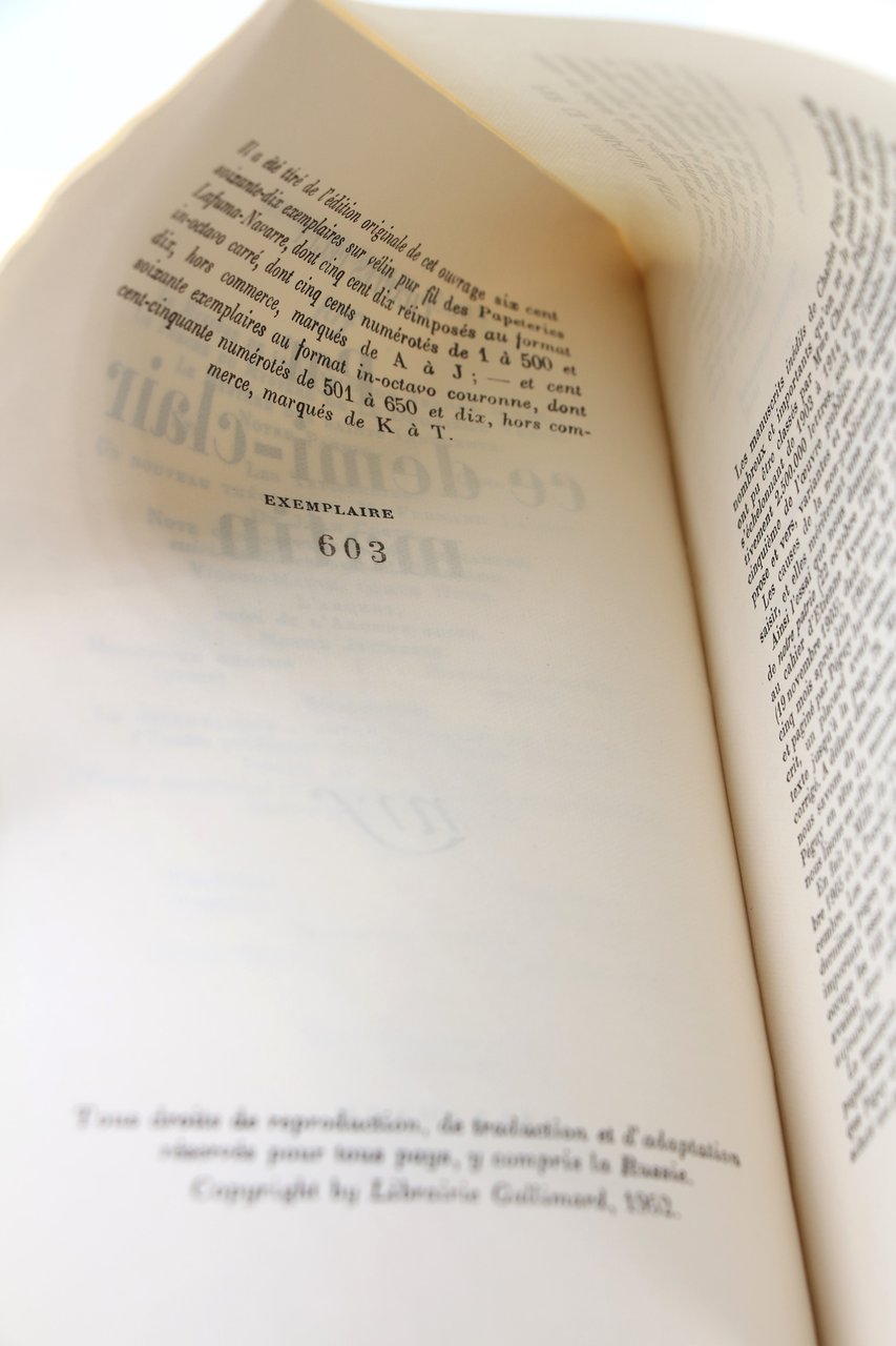 Gallimard | Paris 1952 | 14.50 x 21.50 cm | broché | [ENGLISH DESCRIPTION ON DEMAND] | Edition originale, un des 670 exemplaires numérotés sur pur fil, le nôtre un des 160 in-8, seuls grands papiers. Bel exemplaire.