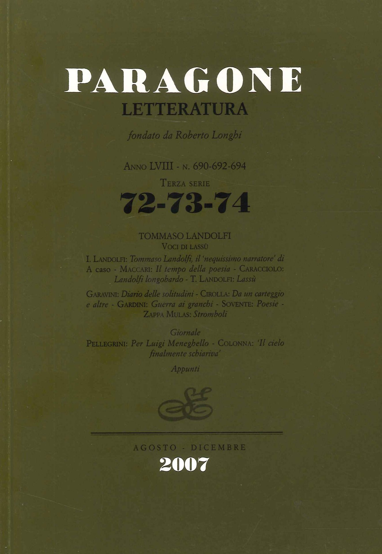 - Paragone letteratura. Anno LVIII. Terza serie. Numero 72/73/74 (690-692-694). Agosto-Dicembre 2007