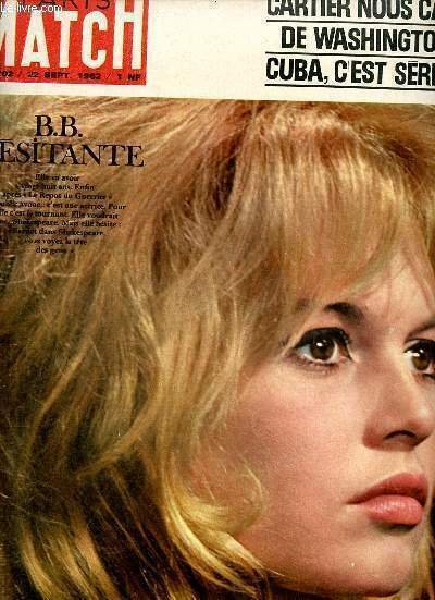 Paris Match n°702 22 septembre 1962 - Brigitte Bardot hésistante - Cartier nous cable de Washington Cuba c'est sérieux - Raymond Tournoux sur la question du référendum le Général et les parties engagent le fer pourquoi De Gaulle etc.