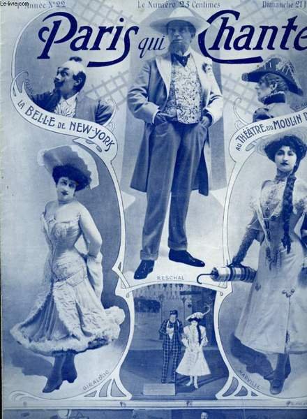 21 juin 1903. In-4. En feuillets. Etat d'usage, Couv. défraîchie, Dos satisfaisant, Déchirures. 15 pages. Nombreuses illustrations et gravures en couleur monochrome, dans le texte et hors texte. Nombreuses partitions pour chants + paroles. . . . Classification Dewey : 780-Musique