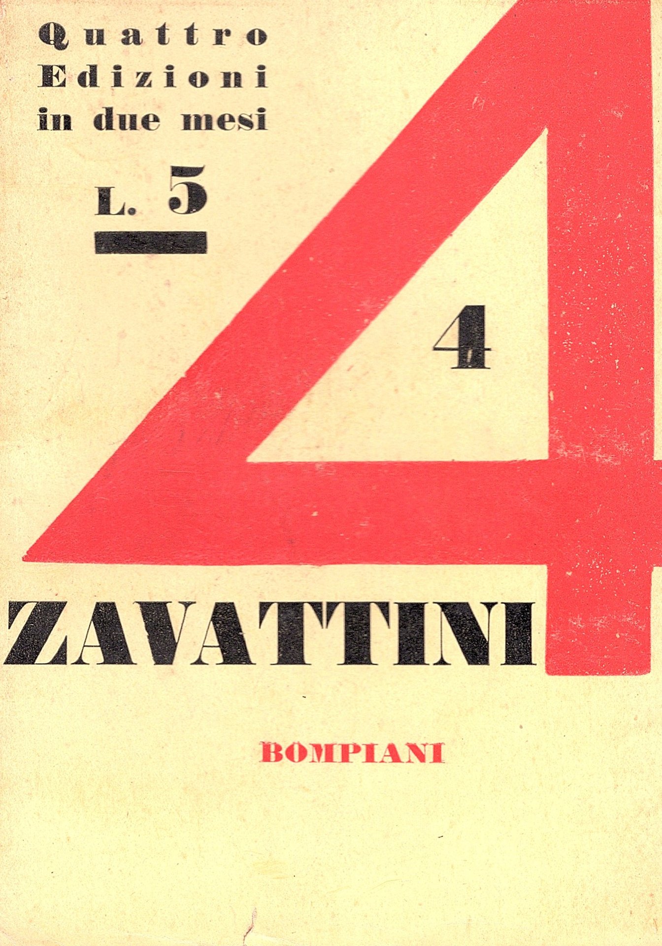 In-16° (190x135mm), brossura editoriale con illustrazione in bianco e nero al piatto di Giacinto Mondaini, sovracoperta in grafica razionalista con giustificazione di tiratura stamapata in rosso e nero. Pp. 120, (12), un disegno di Zavattini in b/n fuori testo. Ottimo esemplare protetto da velina. Quarta edizione di questa opera prima narrante un curioso viaggio spiritico dell'autore.