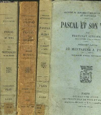 PASCAL ET SON TEMPS - 3 VOLUMES - TOMES I+II+III / De Montaigne � Pascal - L'Histoire de Pascal - Les provenciales et les pens�es | Libri antichi e moderni | Strowski Fortunat