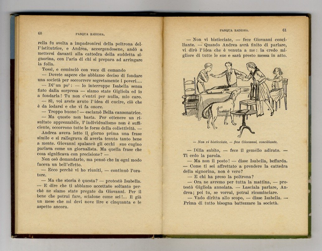 Firenze, Adriano Salani, 23 ottobre 1939, in-16 grande, cartonatura editoriale figurata a colori da Fiorenzo Faorzi, pp. 162, [6]. Con illustrazioni in nero n.t. di Duché. Eric de Cys è lo pseudonimo di Marie J.V. Benoit d'Entreveaux. Titolo n. 19 della "Biblioteca dei miei ragazzi", una delle più famose collane di libri per bambini dagli anni Trenta agli anni Cinquanta. Firma di possesso sull'occhietto e sul frontespizio, per il resto ottimo esemplare.
