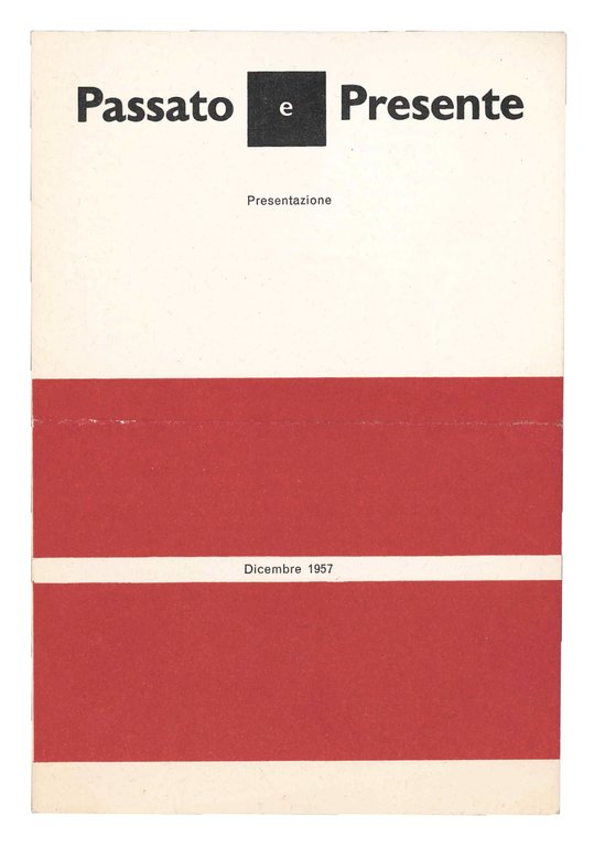 Mm. 209x142. Pp. [2]. Volantino editoriale con titolo alla cop. ant. (traccia di piegatura orizzontale). Prima edizione di questo prospetto editoriale della rivista Passato e Presente, rivista bimestrale di politica diretta da Carlo Ripa Di Meana.