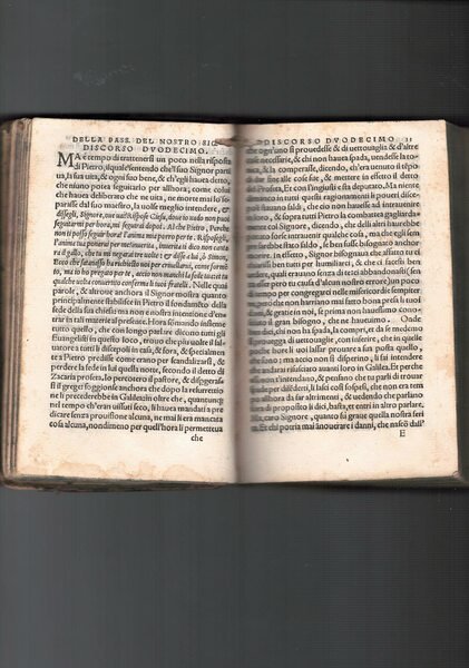 2 tomi in 1 vol., in 16°, p. pelle, cc.n. 170 + cc.nn. 2 (Del Bene, Passione del Nostro Signor Iesu Christo) + cc.n. 259 (Dominici, Tractato della Sanctissima Charita). Front. del 1° tomo fig. Tagli azzurri. Capilettera al secondo tomo. Nervi. Mende alla cop. Dal primo tomo risulta mancante l'occhiello (registro A), mentre dal secondo risultano mancanti l'occhiello e il front. (registro A - A1). Il Tractato del Dominici è una rarissima opera ascetica del frate domenicano, beato, cardinale, fondatore nel 1406 del convento di S. Domenico di Fiesole, riformatore del proprio ordine e tenace cooperatore alla cessazione dello Scisma d'Occidente. Esempio di prosa volgare trecentesca. Alcune notizie biografiche sono contenute nella Epistola del Frate N. che occupa il secondo e terzo foglio preliminare. Opera di rara reperibilità.