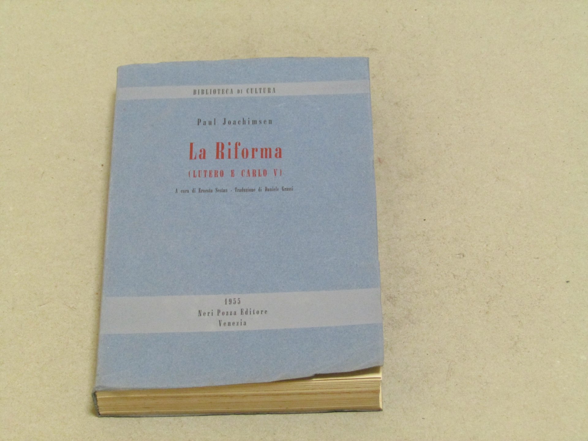 Paul Joachimsen Paul Joachimsen. La Riforma. Lutero e Carlo V. Venezia, Neri Pozza Editore 1955 - I italiano, in ottavo 22 14 pp. XXVIII+384 Saggio storico sulla Riforma Protestante. La copertina del libro ha gli angoli lievemente piegati, sulle pagine sono presenti delle piccole macchie, le pagine sono ingiallite e intonse