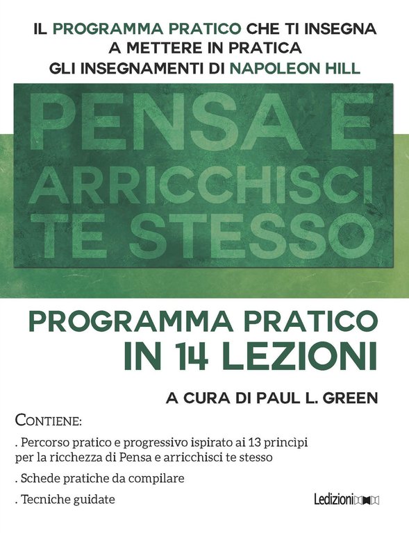 Con il programma pratico contenuto in questo libro potrai mettere in opera i tredici comprovati passi per la ricchezza, frutto di oltre venticinque anni di ricerca, in collaborazione con oltre cinquecento illustri uomini di successo. Il programma pratico proposto in questo libro segue gli insegnamenti di Pensa e arricchisci te stesso ed esamina singolarmente e a livello modulare i tredici princìpi per la ricchezza. Con l'ultima lezione imparerai inoltre a sconfiggere i sei spettri della paura e le influenze negative della tua mente e degli altri. Il programma ti permette di mettere in pratica gli insegnamenti fondamentali di Napoleon Hill con contributi e spunti operativi per ottenere ricchezza, felicità e successo nella vita. Oltre al testo questo libro contiene tecniche e schede pratiche per la migliore esecuzione del programma pratico. Con questo libro impari: A costruire il tuo successo. A tenere sempre viva la fiamma del tuo obiettivo. Ad avere strumenti operativi da utilizzare quotidianamente. A creare un progetto di vita che rispecchi i tuoi obiettivi. A sviluppare determinazione, autostima e tenacia. A migliorare la tua vita, sia in campo personale sia in campo professionale. A conoscere il mondo di Napoleon Hill e i segreti per una vita di successo.