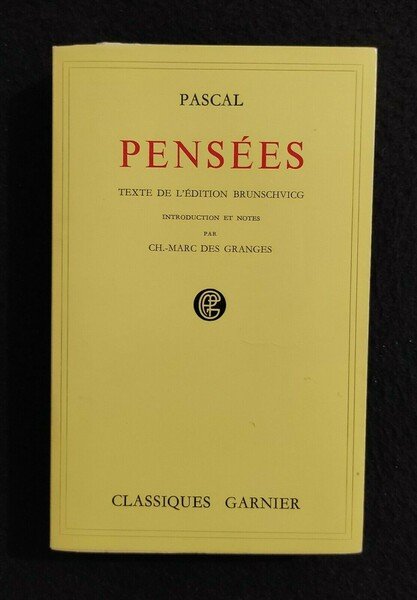 Autore: Pascal Editore: Garnier Formato: 12x19cm - Copertina Morbida con sovraccoperta Pagine: 342 Lingua: Francese Condizioni: Buone; come da foto; con piccoli segni del tempo
