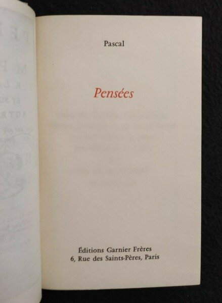 Pensées - Pascal - Garnier - 1958 - Francese | Libri antichi e moderni |