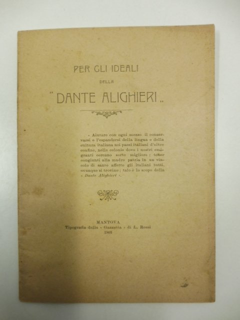 Per gli ideali della Dante Alighieri | Libri antichi e moderni | Anonimo