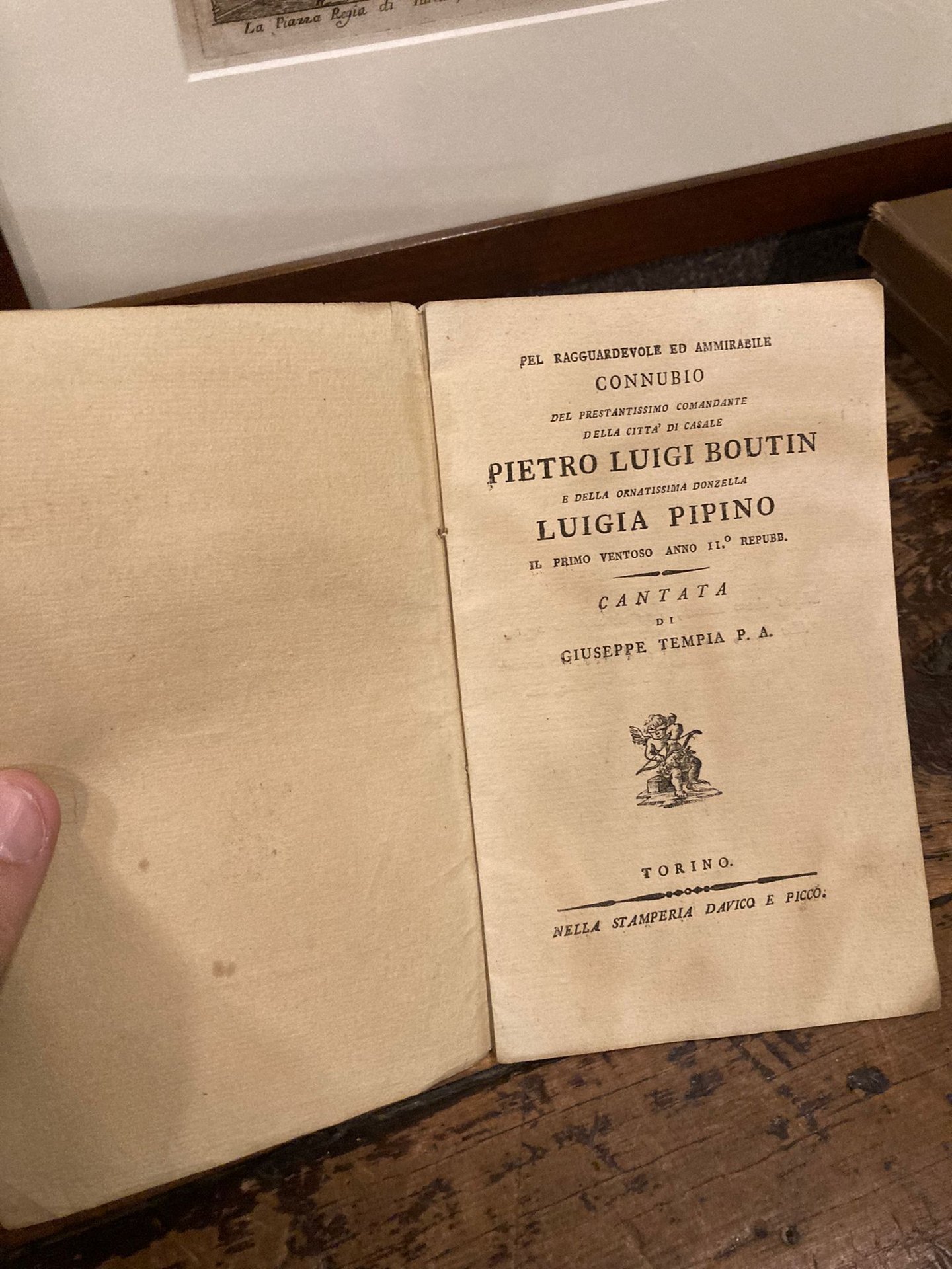 Per il Ragguardevole ed ammirabile connubio del Prestantissimo Comandante della Città di Casale Pietro Luigi Boutin e della Ornatissima Donzella Luigia Pipino. Il primo Ventoso Anno II° Repubb. Cantata di Giuseppe Tempia | Libri antichi e moderni | Tempia Giuseppe