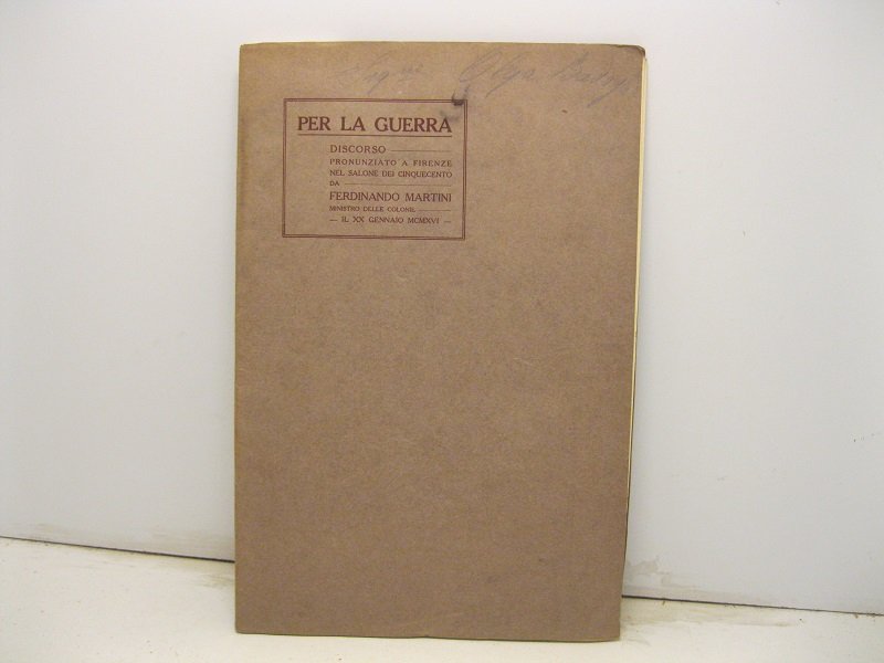 Per la guerra. Discorso pronunziato a Firenze nel salone dei Cinquecento da Ferdinando Martini ministro delle colonie il XX gennaio MCMXVI | Libri antichi e moderni | Martini Ferdinando