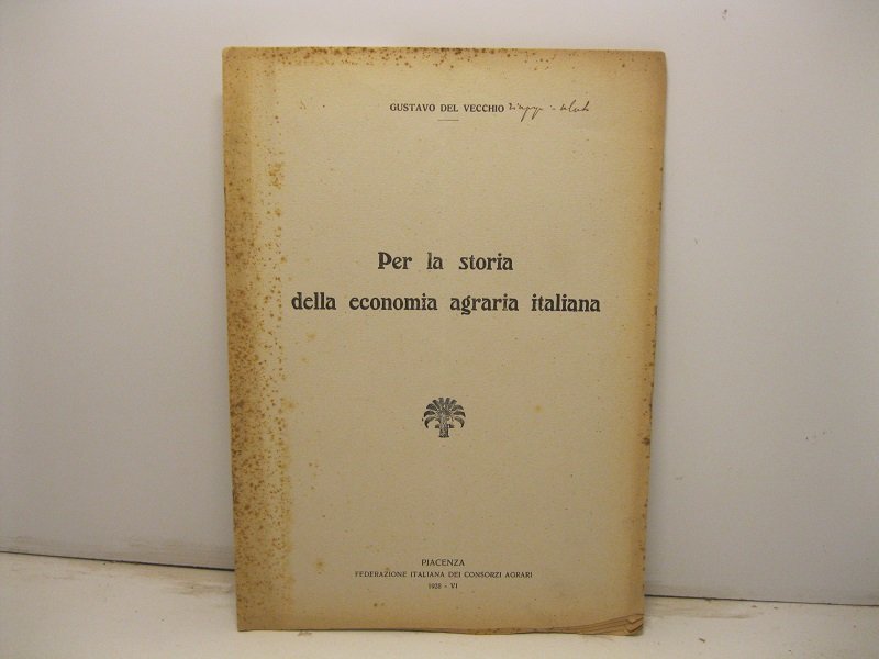 Per la storia della economia agraria italiana | Libri antichi e moderni | Del Vecchio Gustavo