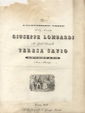 Per le faustissime nozze dell'Avvocato Giuseppe Lombardi colla Gentil Damigella Teresa Savio, Attestato di stima e d'amicizia.