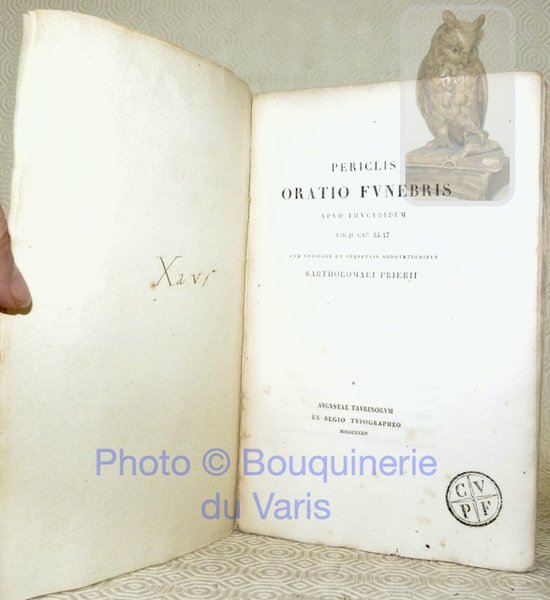 Periclis oratio funebris apud Thycididem. Lib. II. Cap. 35-47. Cum versione et perpetuis adnotationibus Bartholomaei Prierii. | Libri antichi e moderni | Pericles. - Prierius, Bartholomaei.