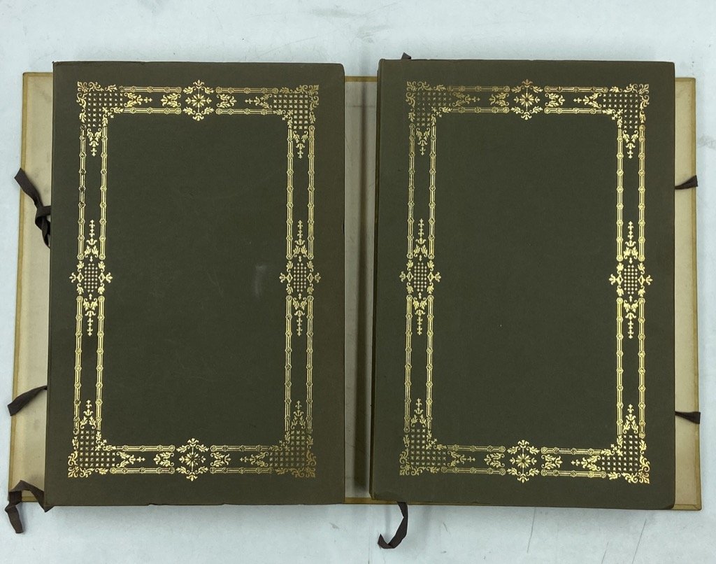 Due volumi in legatura editoriale cartonata con fregi dorati e custodia a cartella con laccetti, cm 21 x 14, pp XX 301 (1), X 297 (1), alcune figure in nero, fregi. Giuseppe Morpurgo fu critico letterario e professore in vari licei italiani, autore di numerose traduzioni, antologie e saggi rivolti agli studenti; docente al Liceo Gioberti di Torino, animò nella città una scuola clandestina per allievi ebrei quando fu allontanato dall'insegnamento a causa delle leggi razziali, nel 1938. Quest'opera postuma, in cui a partire da alcuni versi del poema dantesco l'autore offre una «descrizione viva e palpitante di momenti di vita di Francesca, di Fra Dolcino, di Mosca dei Lamberti, di altri e di altri ancora», fu pubblicata in due volumi nella serie delle strenne della tipografia torinese Vincenzo Bona, per i capodanno del 1970 e del 1971; il primo volume contiene un ricordo dell'autore di Giulio Vincenzo Bona, il secondo un’appendice contenente le allegorie o incisioni che Antonio Zatta, tipografo in Venezia, premise ai singoli canti della Divina Commedia da lui stampata nel 1757-1758. Esmplare numero 377 di una tiratura non precisata, stampata su carta a mano «vergé» delle cartiere Burgo.