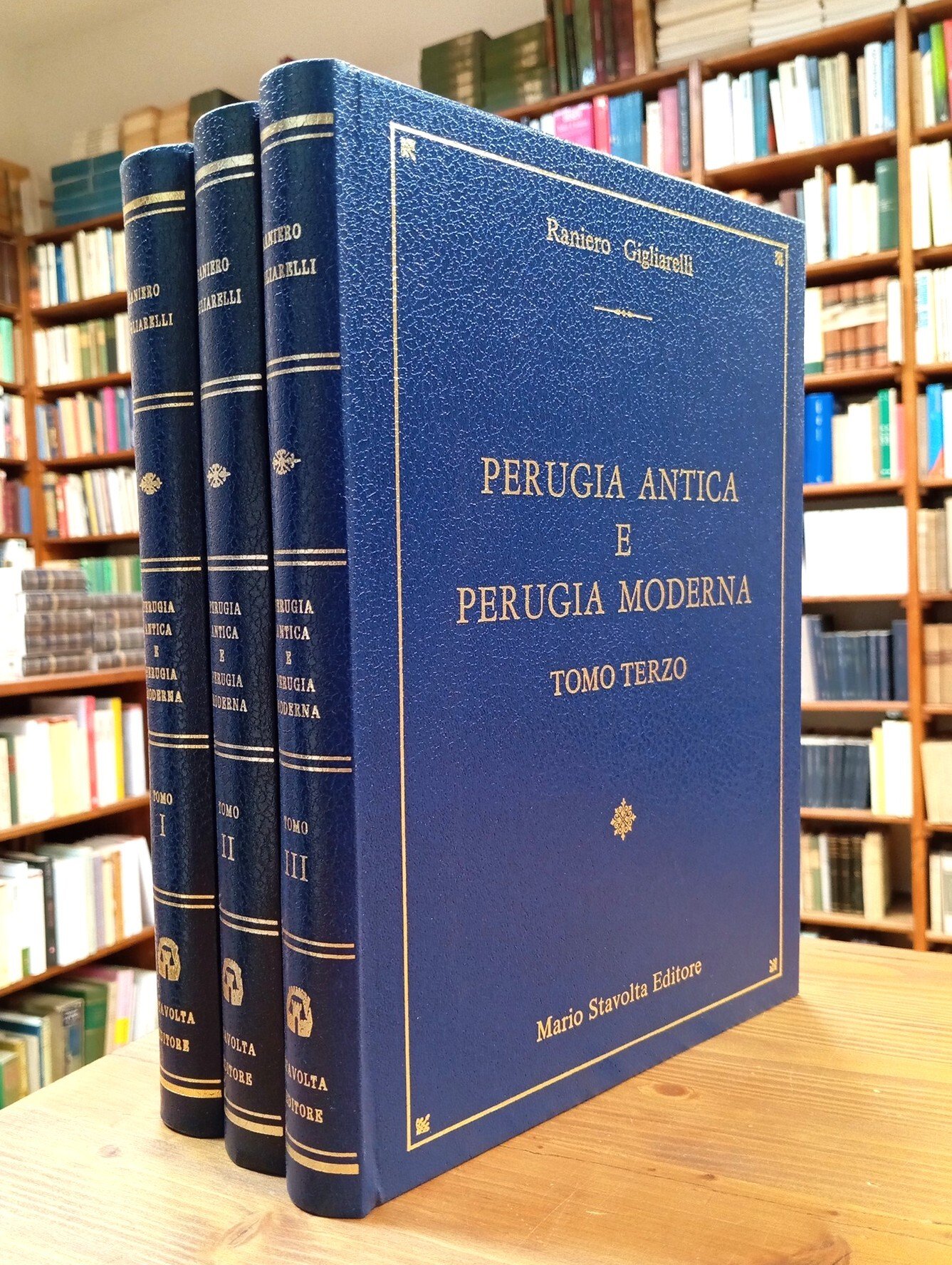 Ristampa anastatica, sulla originale perugina del 1908, pubblicata tra il 1982 ed il 1983. Tre volumi con rilegatura uniforme originale per un totale di 1039 pagine con numerose figure in nero nel testo. Opera di riferimento per la storia del capoluogo umbro. Volumi in perfette condizioni, come nuovi.