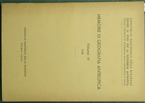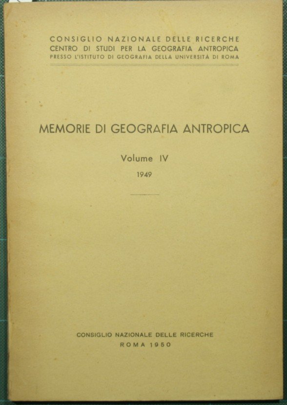 Collana Consiglio Nazionale delle ricerche. Centro di studi per la geografia antropica presso l'Istituto di geografia della Università di Roma - Vol. IV, 1949 - in 8° - pp.80 + 30; 302-330 - Brossura editoriale - Due fascicoli in un volume - Illustrazioni in b/n nel testo e fuori testo - Il secondo fascicolo è di Giuseppe Barbieri, La Valsavaranche (Studio antropogeografico). Estratto dalla Rivista geografica italiana, Annata LVI, fasc. 4, dicembre 1949, La Nuova Italia, Firenze