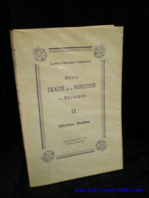 PETIT TRAITE DE LA NOBLESSE EN BELGIQUE II. BIBLIOTHEQUE HERALDIQUE, | Libri antichi e moderni | De Ghellinck Vaernewyck, Xavier