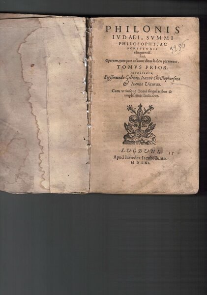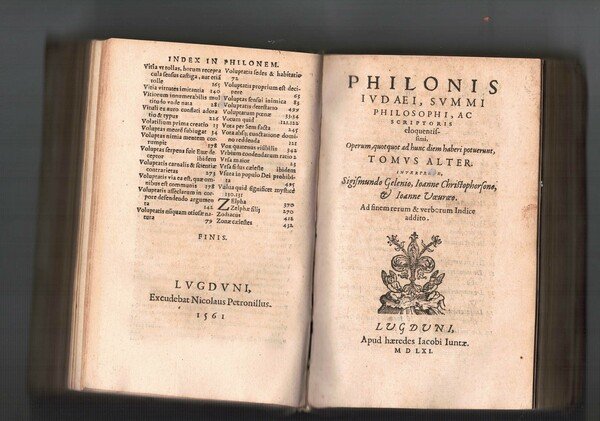 Philonis iudaei, summi philosophi, ac scriptoris eloquentissimi, operum, quotquot ad hunc diem haberi potuerunt. | Libri antichi e moderni | Gelenio Sigismundo - Christophorsono Ianne - Voeuroeo Ioanne.