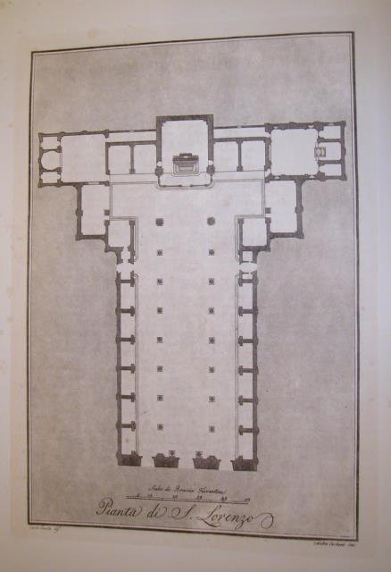 PIANTA DELLA CHIESA DI S.LORENZO A FIRENZE. Riproduzione tratta da "Viaggio pittorico della Toscana" di Jacopo e Antonio Terreni. | Libri antichi e moderni |