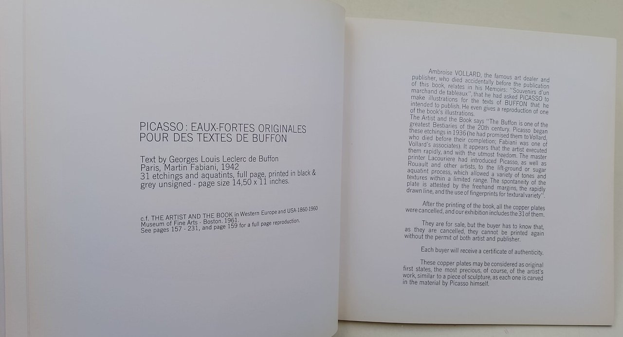 Picasso-31 cancelled original plates-Histoire naturelle de Buffon | Libri antichi e moderni | AA.VV.
