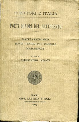 Poeti minori del Settecento. Mazza - Rezzonico - Bondi - Fiorentino - Cassoli - Mascheroni. A cura di Alessandro Donati | Libri antichi e moderni |