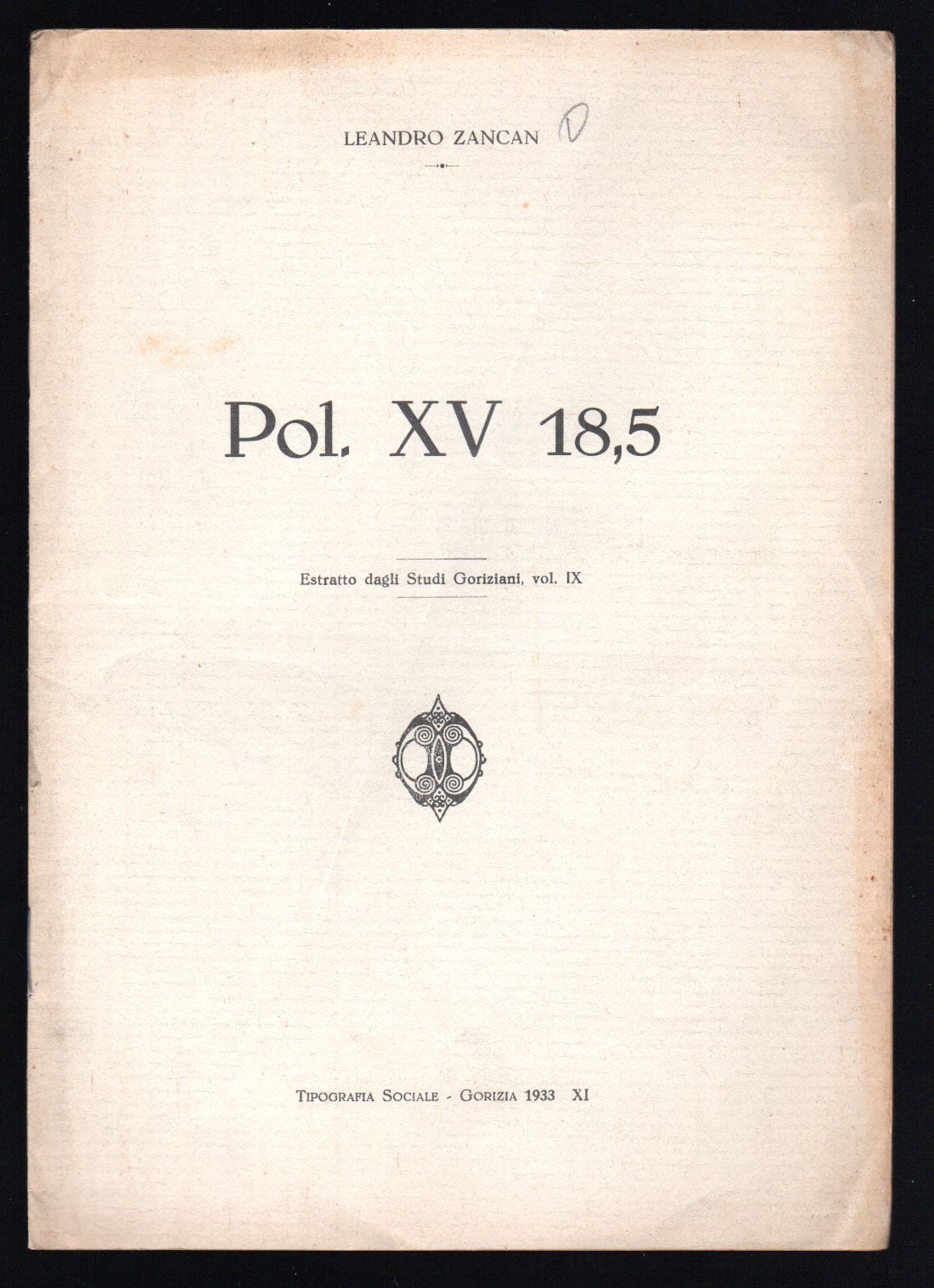 Pol. XV 18,5 | Libri antichi e moderni | Zancan Leandro, Zancan Leandro