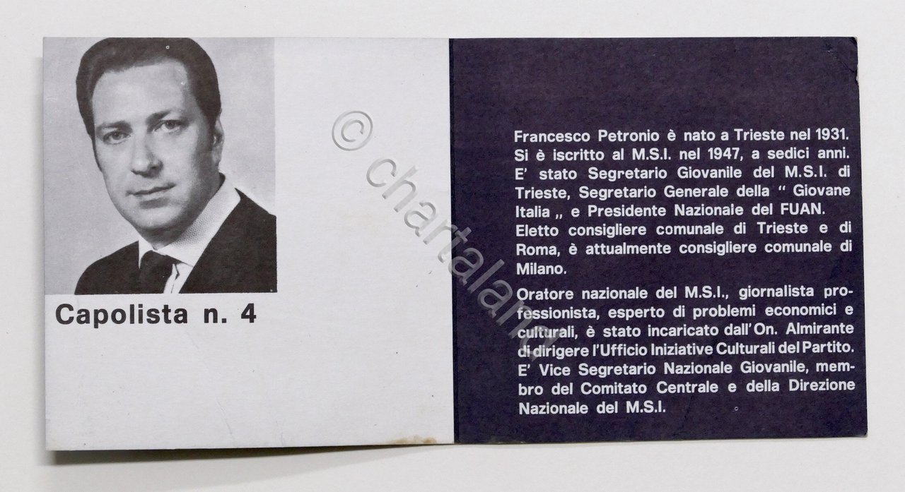 Politica - Volantino MSI - Petronio - Candidato alla Camera - anni ’70 | Libri antichi e moderni |