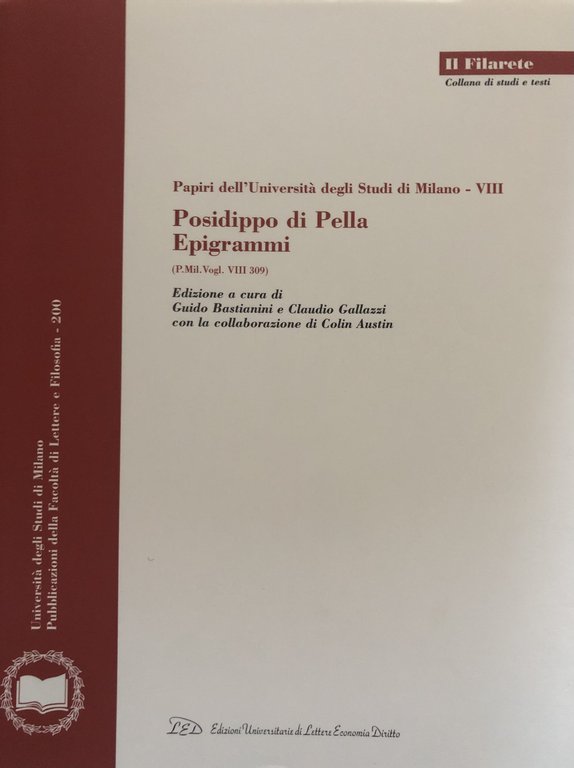 Posidippo di Pella. Epigrammi (P. Mil. Vogl. VIII 309). Con 2 CD-ROM | Libri antichi e moderni | a cura di Guido Bastianini e Claudio Gallazzi, ,a cura di Guido Bastianini e Claudio Gallazzi