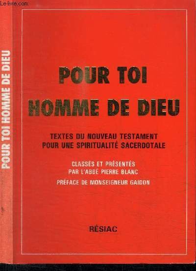 POUR TOI HOMME DE DIEU - TEXTES DU NOUVEAU TESTAMENT POUR UNE SPIRITUALITE SACERDOTALE | Libri antichi e moderni | Blanc Pierre Abbe
